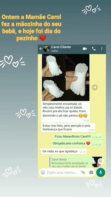 faz um membro (pé ou mão) de um bebê.